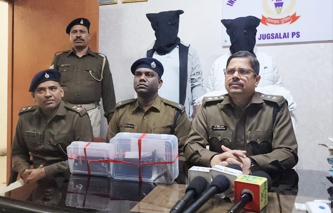प्रेस वार्ता में जानकारी देते एसएसपी। जमशेदपुर | गोलमुरी पुलिस ने जुर्म की साजिश रच…