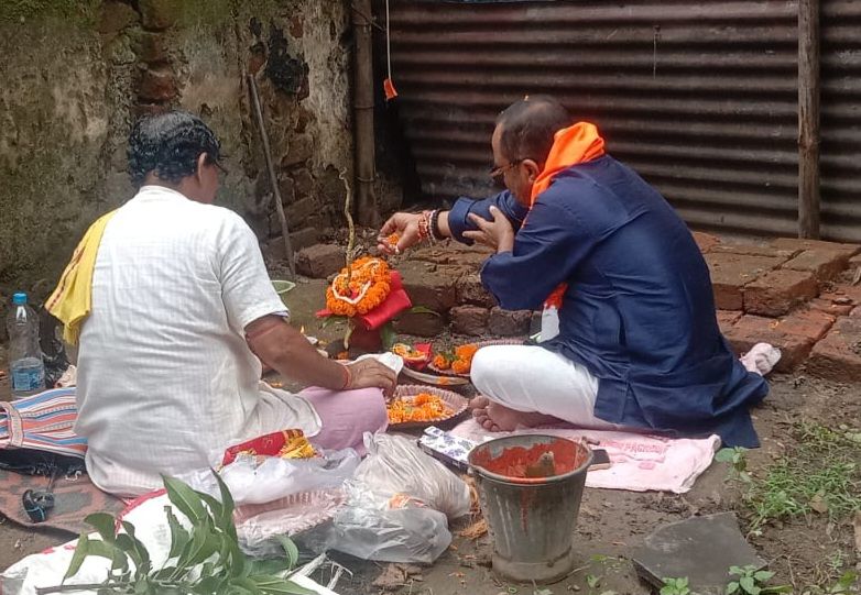 भूमि पूजन करते कमिटी के सदस्य जमशेदपुर | सार्वजनिक टाटानगर दुर्गा पूजा कमिटी का भूमि…
