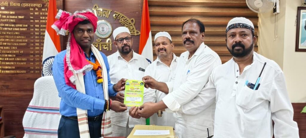 रांची | रिसालदार शाह बाबा का 218वां सालाना उर्स 11-15 सितम्बर 2025 तक आयोजित किया जायेगा। इस अवसर पर दरगार कमिटि का एक प्रतिनिधिमंडल उपाायुक्त-सह-जिला दण्डाधिकारी, रांची मंजूनाथ भजन्त्री से मुलाकात कर कार्यक्रम में शामिल होने का आमंत्रण दिया। जिले के हजारों लोग हर वर्ष इसमें शामिल होते हैं। इसको लेकर जिला प्रशासन की ओर से विधि-व्यवस्था, ट्रैफिक प्रबंधन, साफ-सफाई, स्वास्थ्य सुविधा एवं अन्य आवश्यक व्यवस्थाओं का पूरा ध्यान रखा जाएगा। उन्होंने समिति को आश्वस्त किया कि कार्यक्रम के सफल आयोजन में प्रशासन हर संभव सहयोग करेगा।