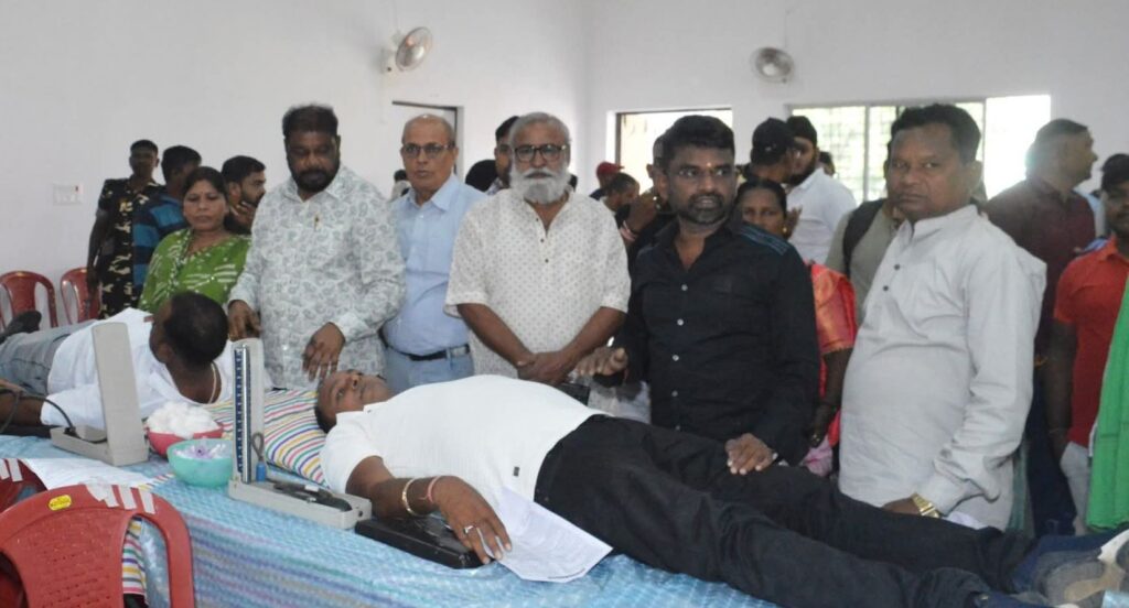 जमशेदपुर | पोटका विधायक संजीव सरदार के जन्मदिवस के अवसर पर संजीव सेना द्वारा शनिवार को करनडीह स्थित जहेरथान में एकदिवसीय रक्तदान शिविर का आयोजन किया गया। इस कार्यक्रम में विधायक संजीव सरदार शामिल होकर रक्तदाताओं का हौसला बढ़ाया। कार्यक्रम की शुरुआत विधायक द्वारा अपने जन्मदिन पर केक काटकर किया गया। इस अवसर पर विधायक ने कहा कि रक्तदान महादान है, इससे किसी व्यक्ति की जान बचाई जा सकती है। रक्तदान से होने वाले फायदे की भी जानकारी दी।