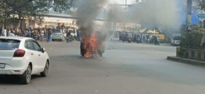 जमशेदपुर | बागबेड़ा थाना अंतर्गत टाटानगर रेलवे स्टेशन के बाहर चाईबासा बस स्टैंड के पास बीच सड़क में सुबह करीब 10 बजे एक सीएनजी टेम्पो में अचानक आग लग गई। स्टेशन परिसर में सुबह के समय यात्रियों की भीड़ रहती है।लोग इधर-उधर भागने लगे और कुछ देर के लिए मुख्य गेट के बाहर जाम लग गई। सूचना मिलने पर दमकल पहुंचा और आग को पूरी तरह से बुझाया। मालूम हो कि शनिवार को भी इसी जगह गमहरिया निवासी एक व्यक्ति के कार में आग लग गई थी।