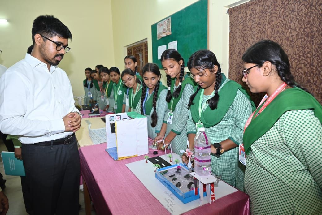 विज्ञान प्रदर्शनी का अवलोकन करते उपायुक्त व अन्य। देवघर | रामकृष्ण विवेकानंद विद्यामंदिर विद्यालय में…