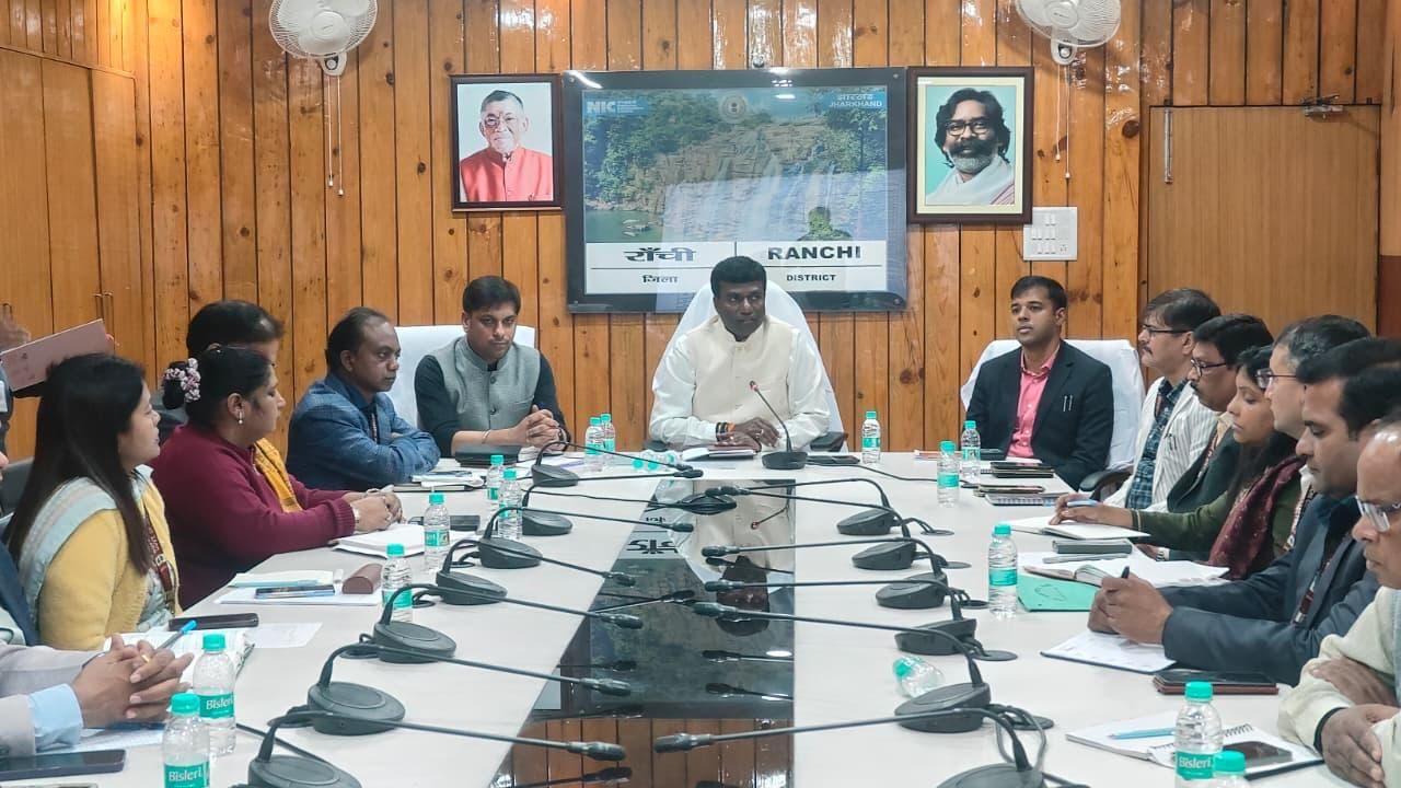 कार्यालय में अधिकारियों के साथ बैठक करते उपायुक्त मंजुनाथ भजन्त्री। रांची | उपायुक्त सह जिला…